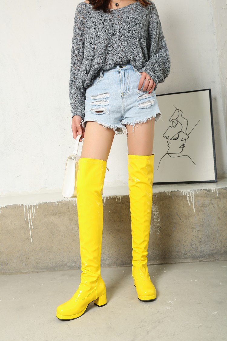 Looking for some boots that are not only stylish but also super comfortable? Look no further! Our Candy Patent Leather Ladies Back Zip Knee Boots offer a unique design and come in a variety of colors, so you can choose the perfect one for you. Made with good quality material, these boots will keep your feet happy all day long. Specifications include a 5cm (1.97 inches) heel height, 7.5cm (2.95 inches) palm width, and a tall 56cm (22.05 inches) tube height with a 40cm (15.75 inches) circumference. You'll love the adhesive production process and stretch patent leather upper material. Don't forget, no velvet insoles or lining!