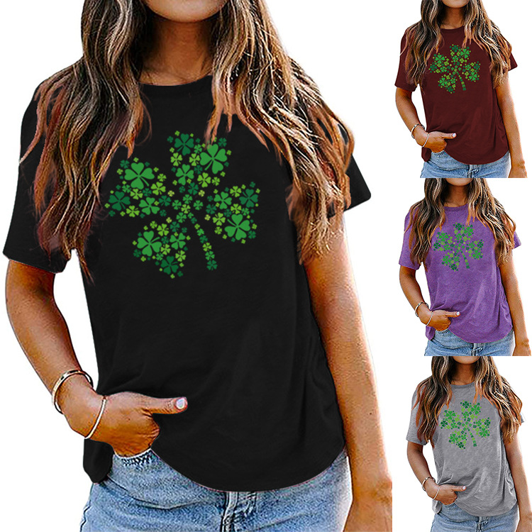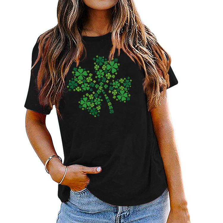 - Fashion St. Patrick's Day Shamrock Crew Neck Print Short Sleeve Women's T-Shirt